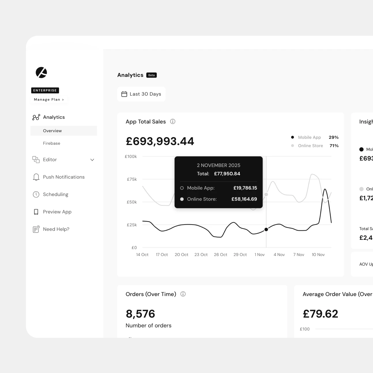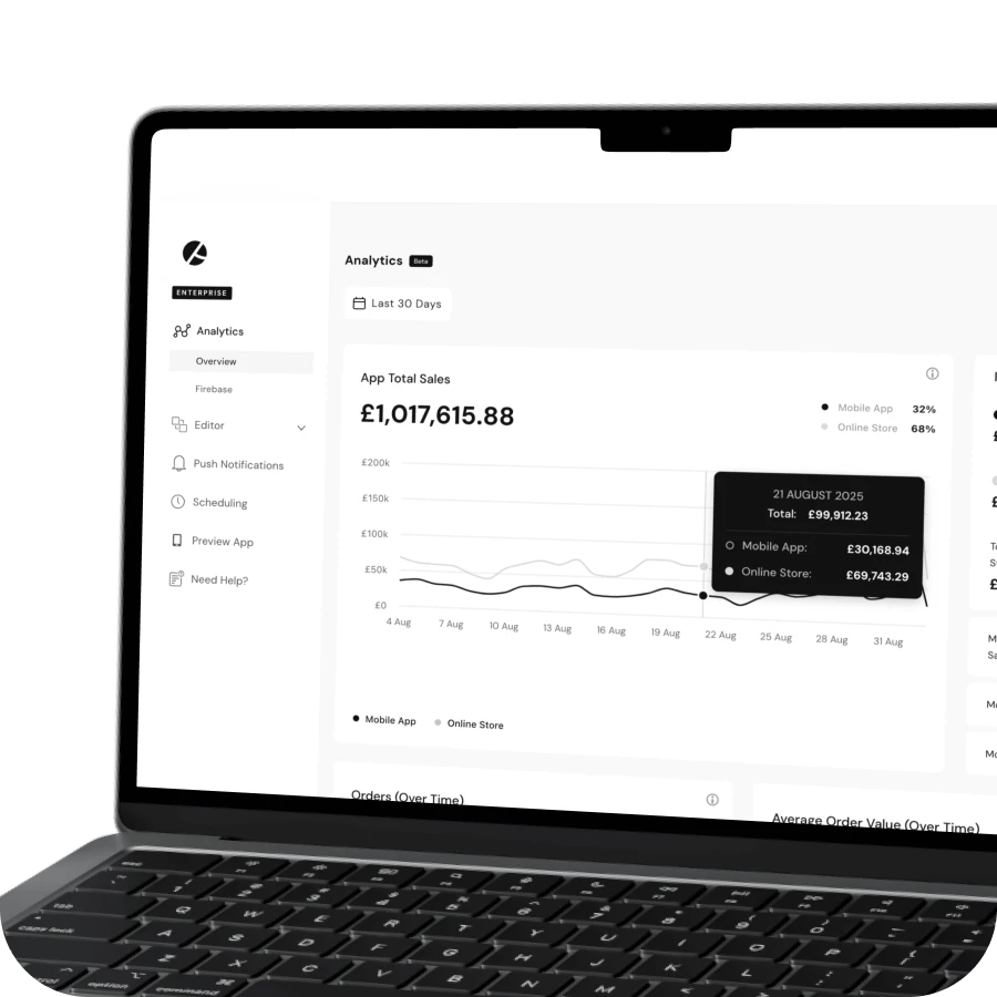 Monitor app revenue, orders, AOV & more – all from an intuitive dashboard.
