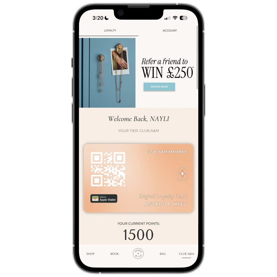 Offer in-app loyalty for your customers to drive repeat purchases and CLTV.