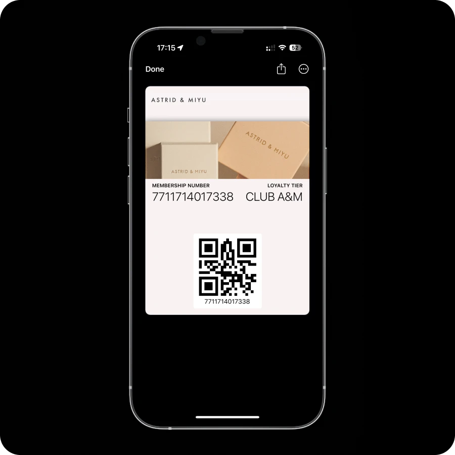 Allow shoppers to collect and redeem loyalty points in-store with a scannable wallet pass that syncs to Shopify POS.