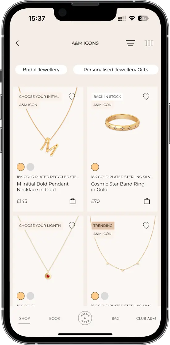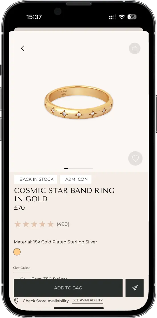 Showcase reviews, materials, care details and styling inspiration within beautifully designed PDPs. Add interactive elements like piercing visualisers, “how to wear” guides, and in-store availability.